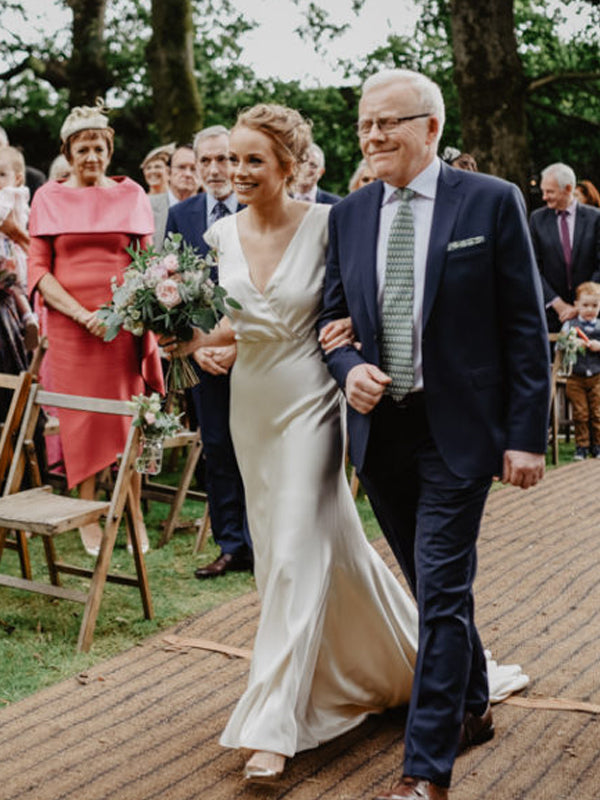 Affordable Sexy V-neck Open Back Simple Soft Satin Long Wedding Dresses.