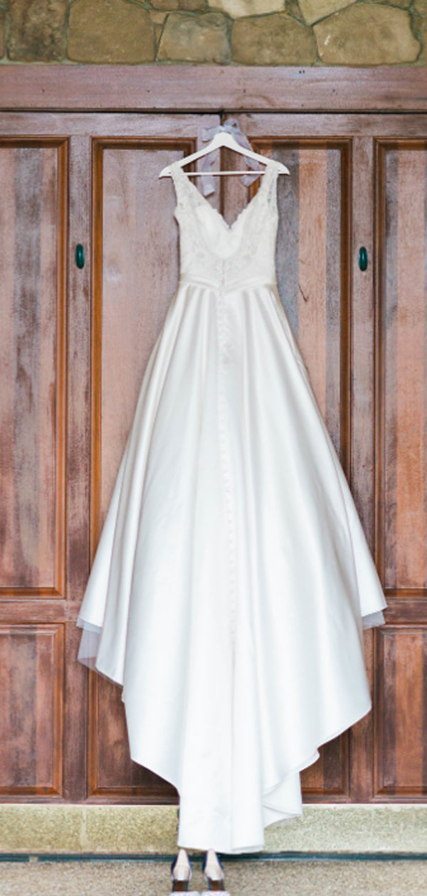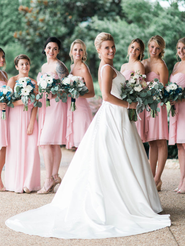 A: Each dress is carefully tailored to match exactly what you see in the photo, and unfortunately we are unable to modify the style, length or material in any way.