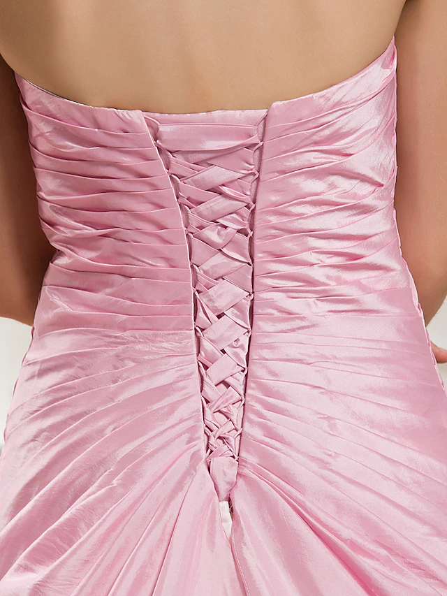 Ball Gown Wedding Dresses Strapless Chapel Train Organza Taffeta Strapless Wedding Dress in Color with Ruched Beading Appliques