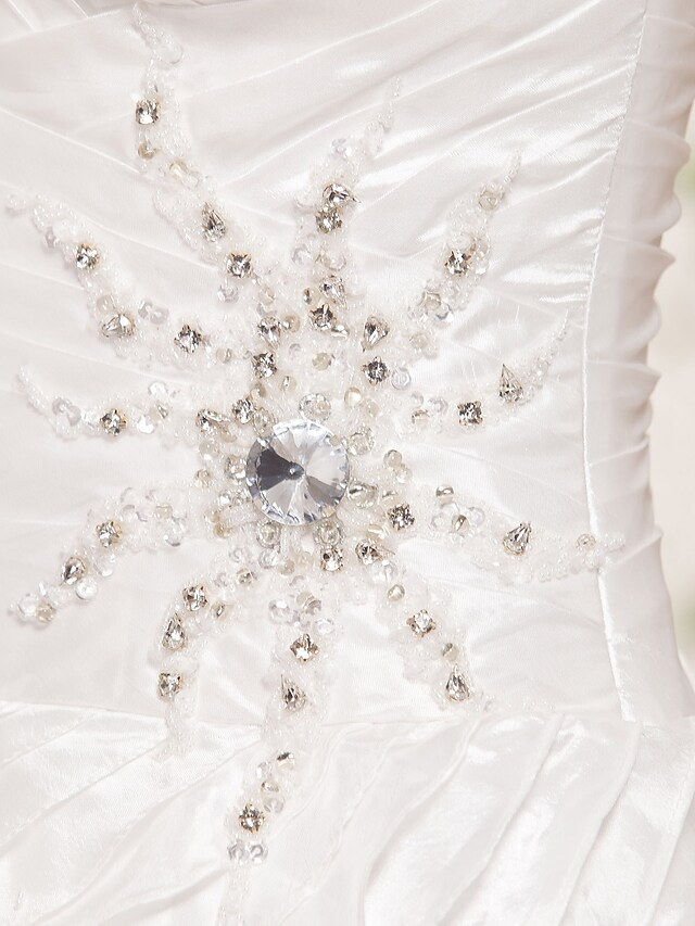Ball Gown Wedding Dresses Strapless Floor Length Taffeta Sleeveless with Beading Cascading Ruffle Criss-Cross