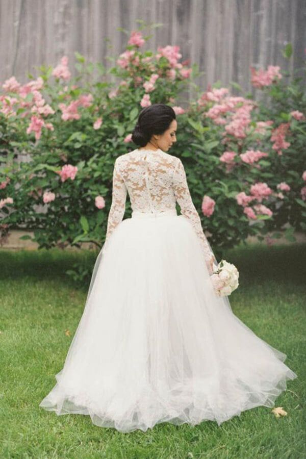 Bohemian Lace Top Two Pieces Long Sleeves High Low Wedding Dresses. MW571