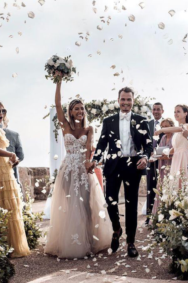Cheap Tulle A-line Sweetheart Long Wedding Dresses with Lace Appliques.MW394