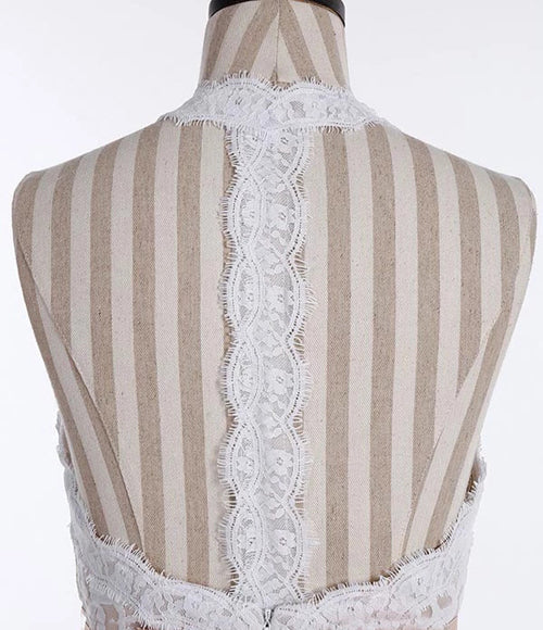 Chiffon A-Line Halter Sleeveless Long Beach Wedding Dress with Lace.MW336
