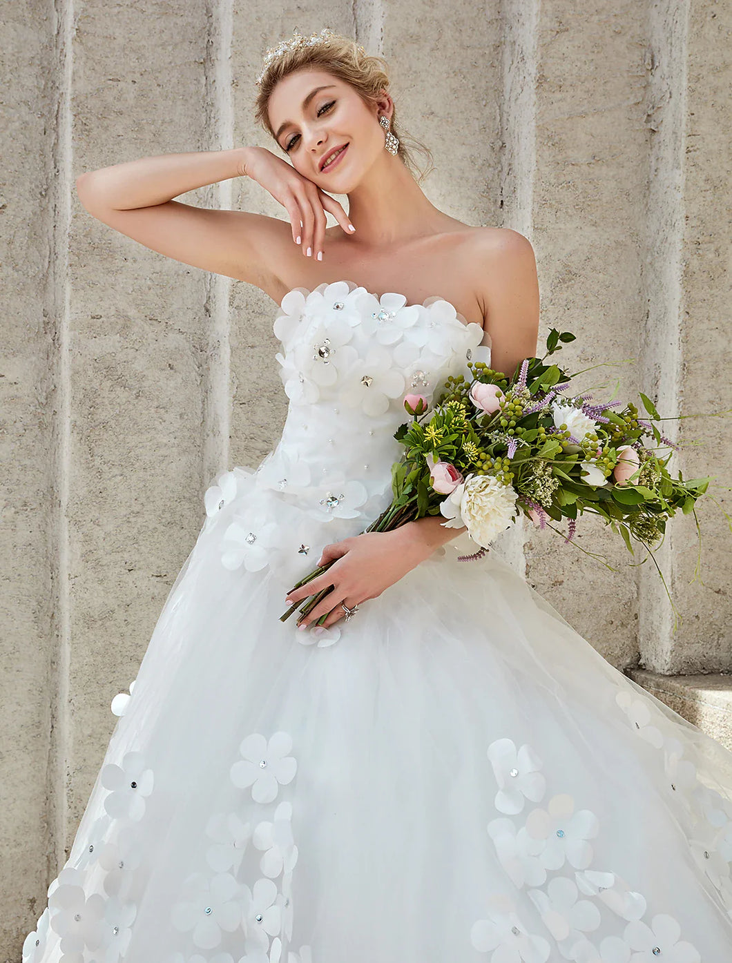 Engagement Open Back Formal Wedding Dresses Chapel Train Ball Gown Strapless Square Neck Lace With Crystals Flower