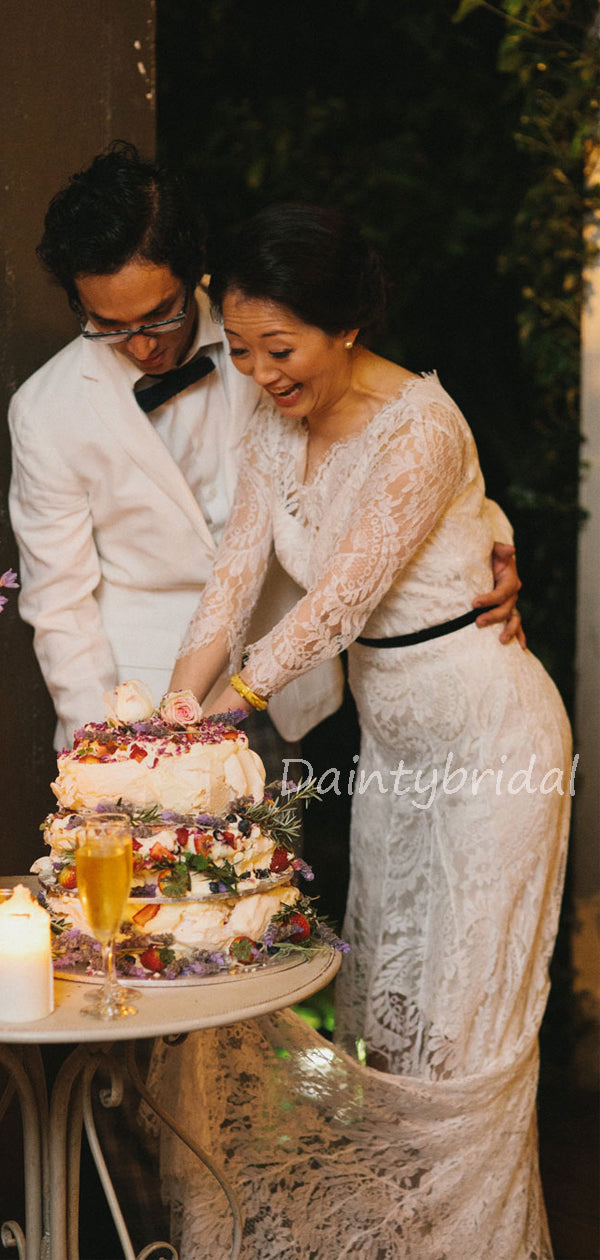 Gogerous V-neck Lace Tulle High-low Wonderful Wedding Dresses Evening Dresses.