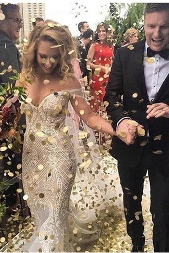 Lace Applique Retro Off the Shoulder Vintage Mermaid Wedding Dress.MW304