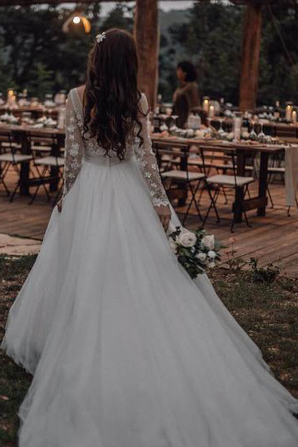 Long Sleeve Boho See Through Wedding Dresses Lace Applique.MW268.