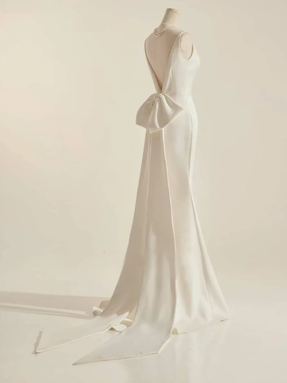 Mermaid Simple Sexy Bow Sleeveless Wedding Dress