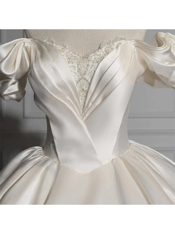 Romantic Off Shoulder Ball Gown Satin Wedding Dress. WD0444