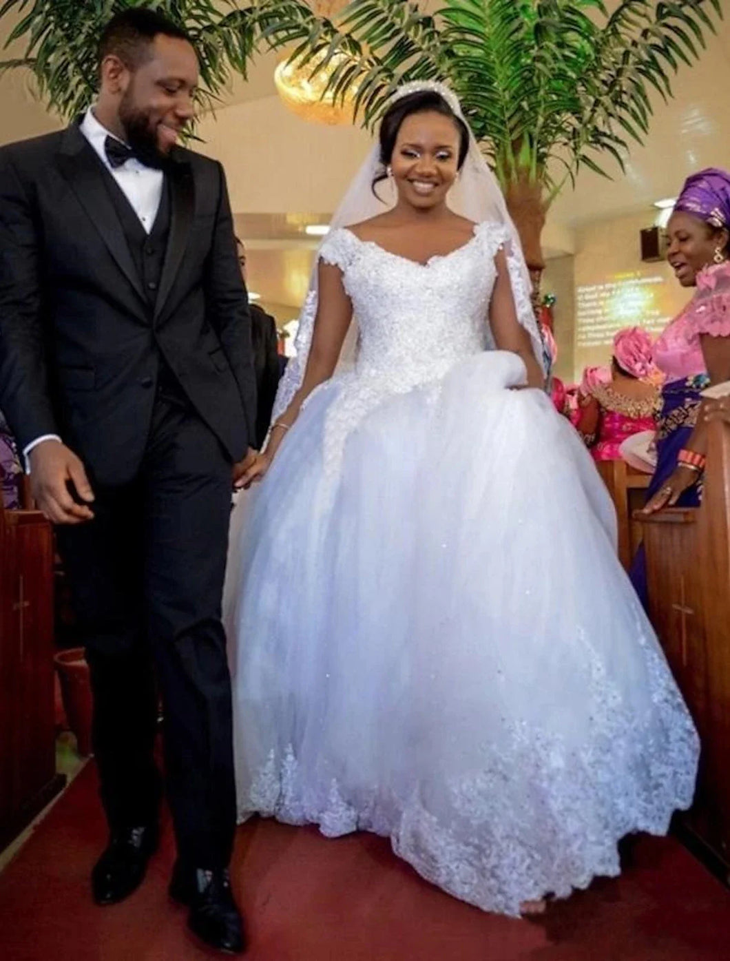 Sexy Formal Wedding Dresses Ball Gown V Neck Cap Sleeve Chapel Train Lace Bridal Gowns With Beading Appliques