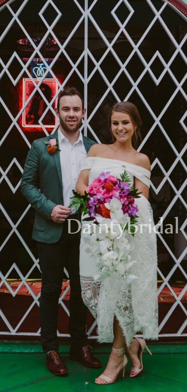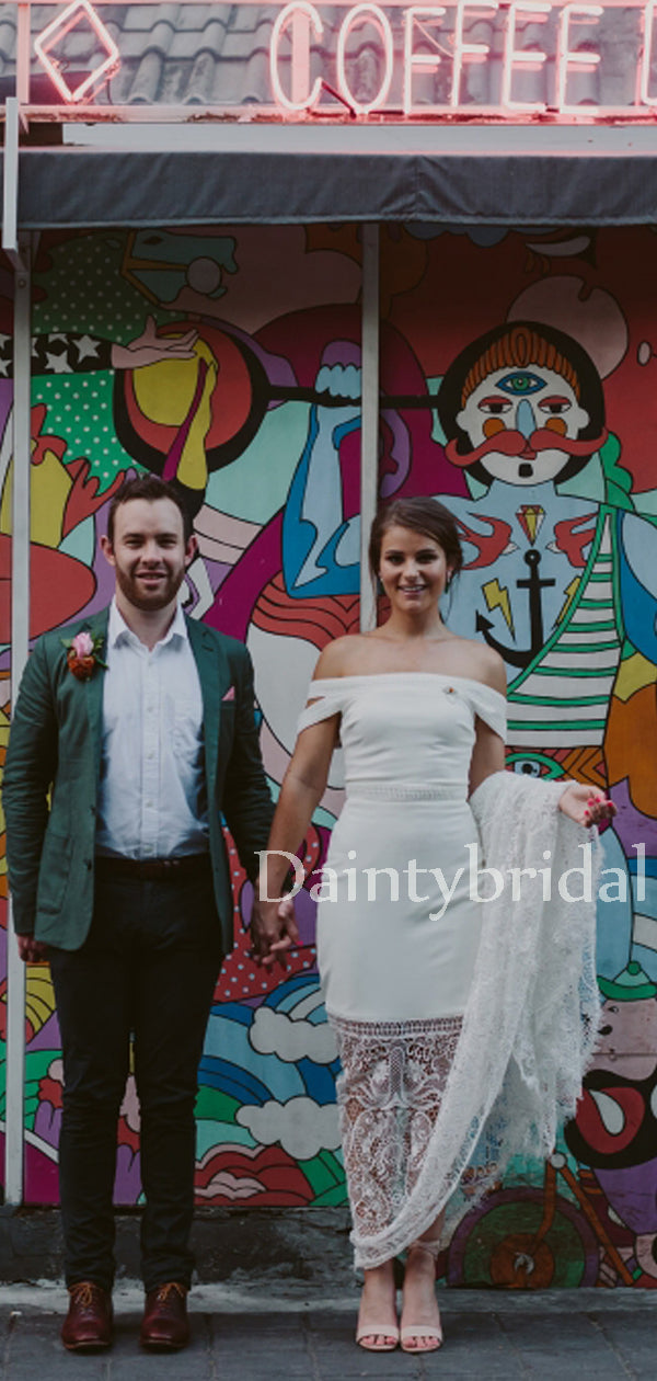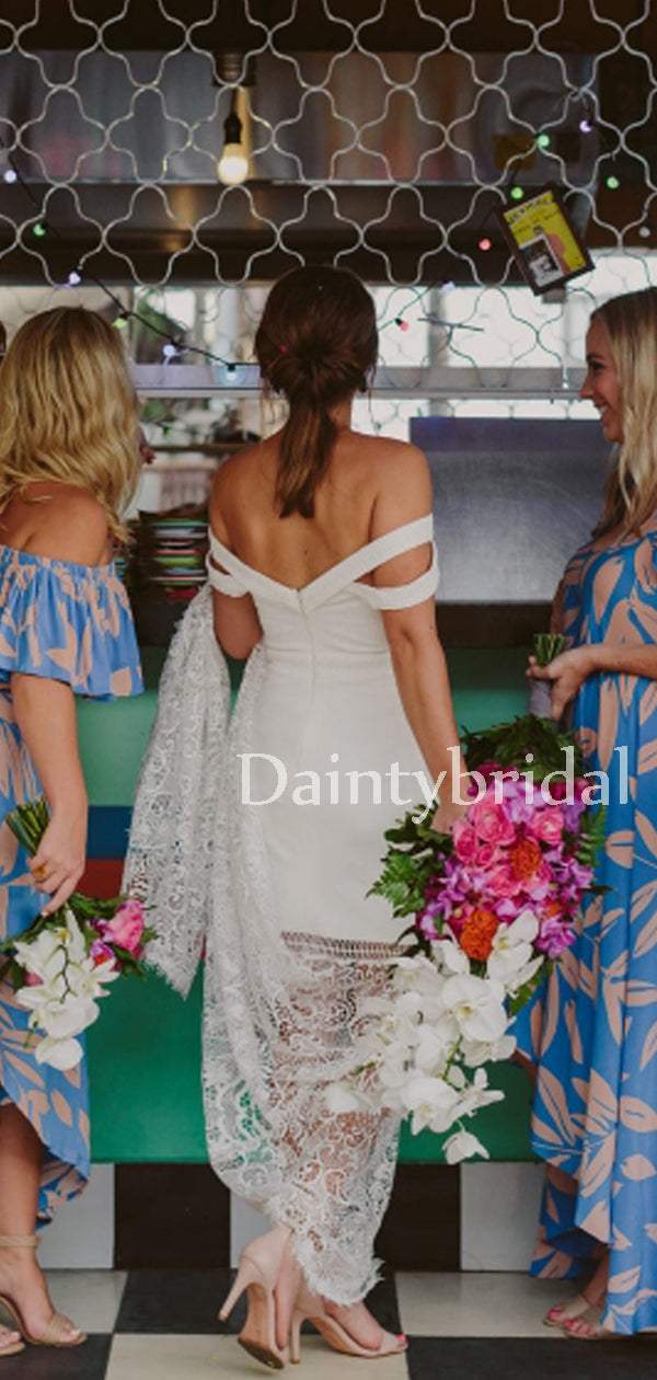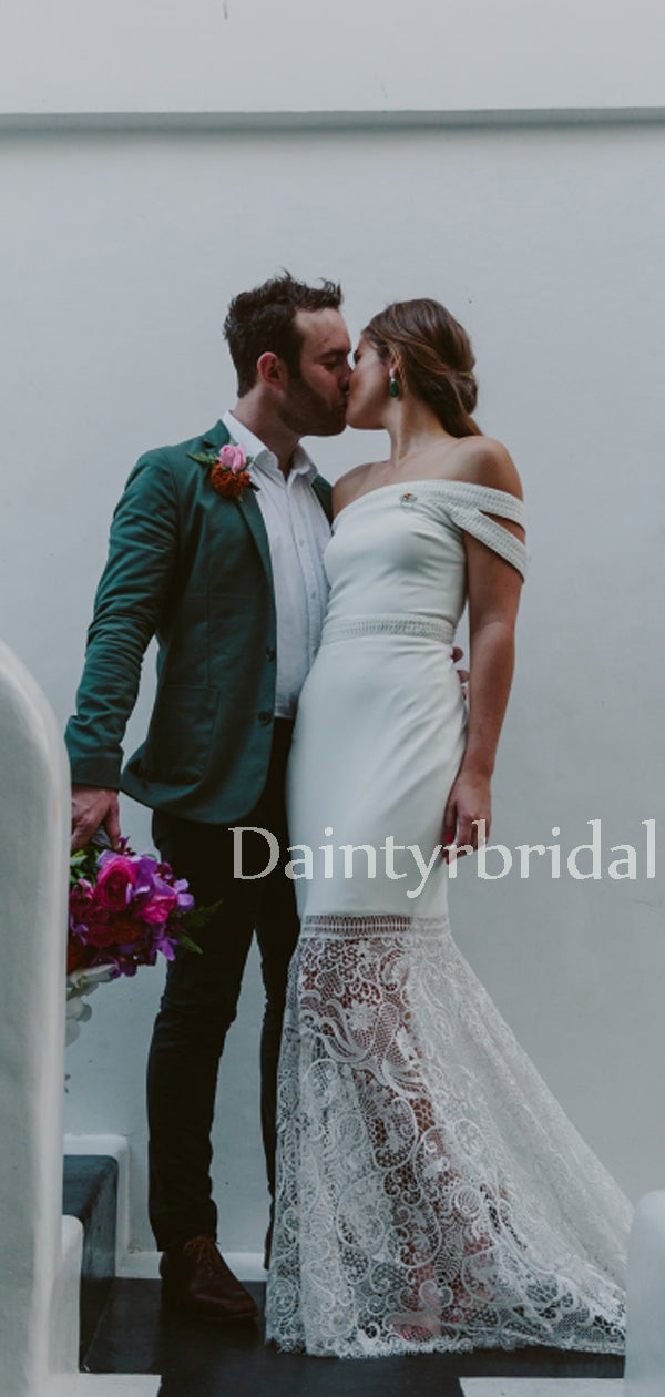 Sexy Straight Off-shoulder Lace Mermaid With Train Long Wedding Dresses.DB10644