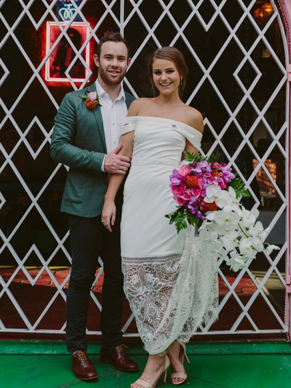 Sexy Straight Off-shoulder Lace Mermaid With Train Long Wedding Dresses.
