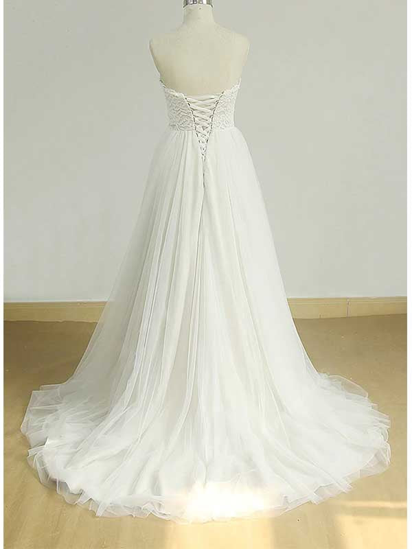 Sexy Sweetheat White Tulle Long Wedding Dress, WD0464