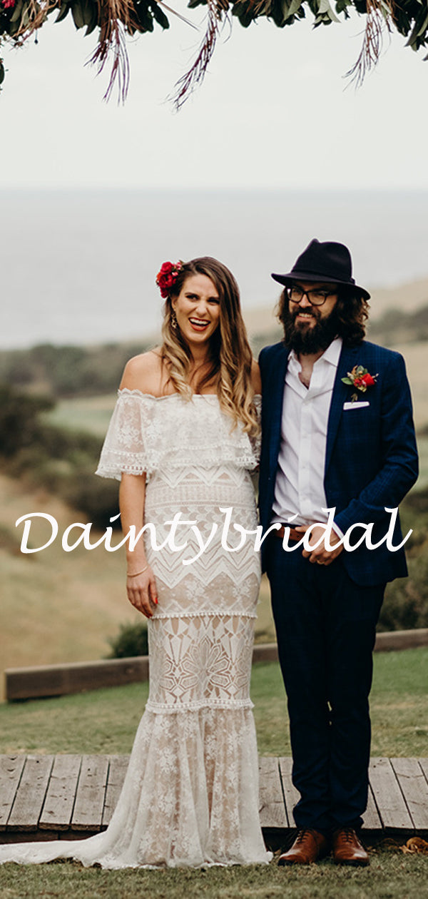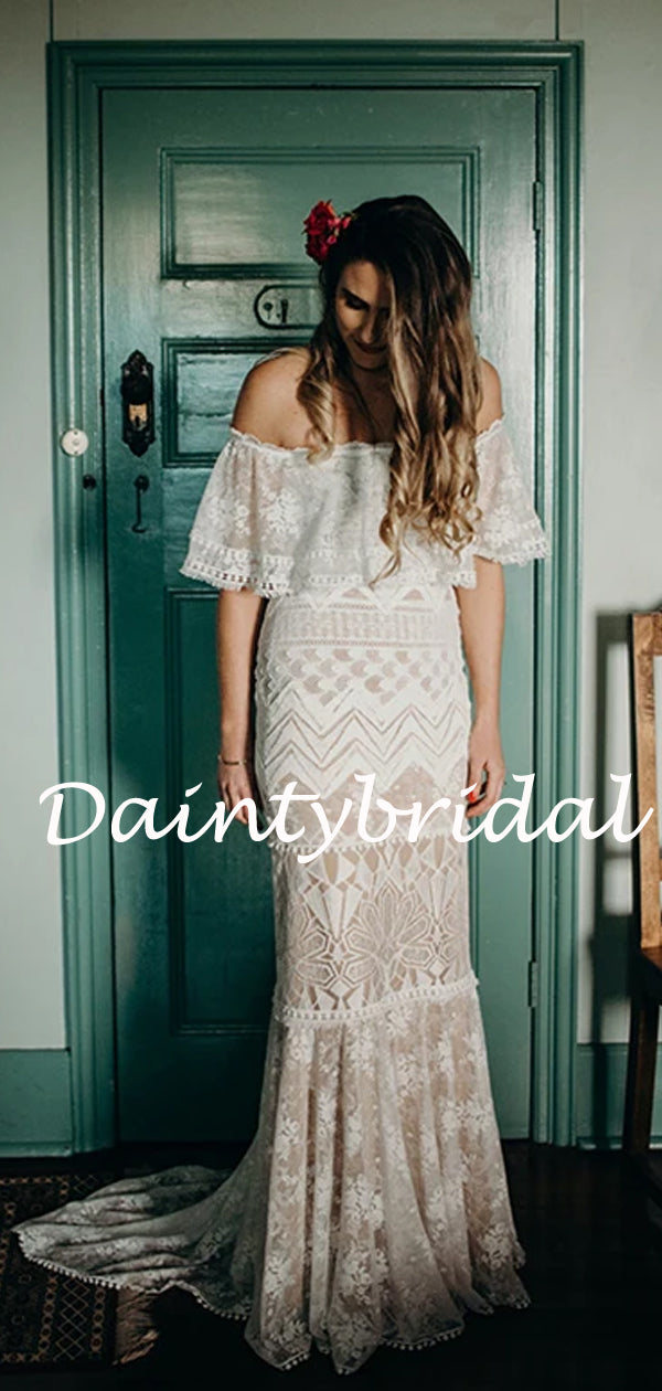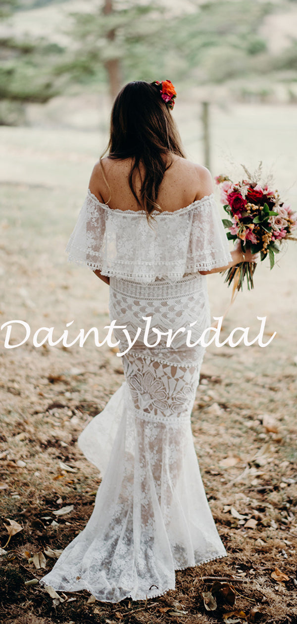 Simple Straight Mermaid Tulle Lace Long Wedding Dresses.DB10785