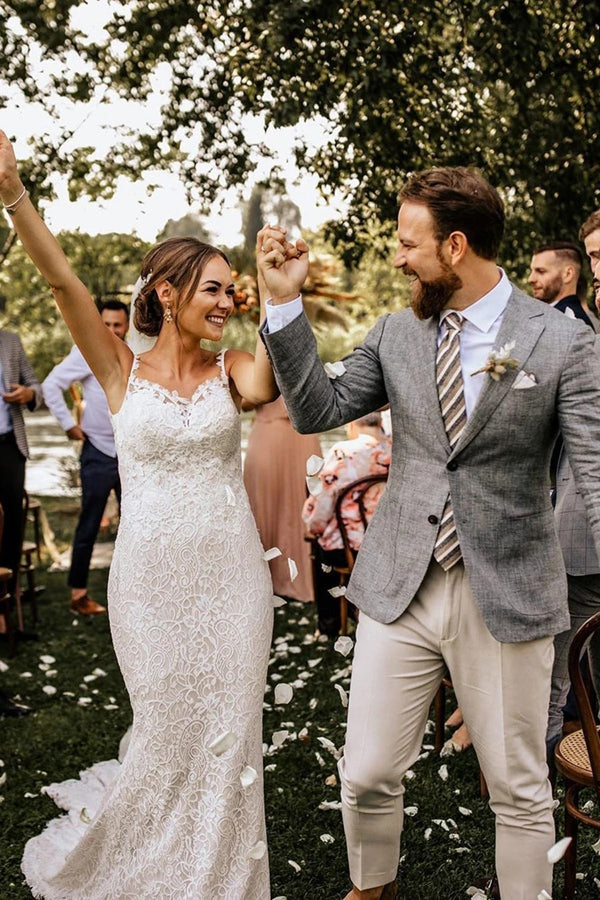 Spaghetti Straps Lace Mermaid Wedding Dresses Lace Romantic Bridal Dresses,MW505