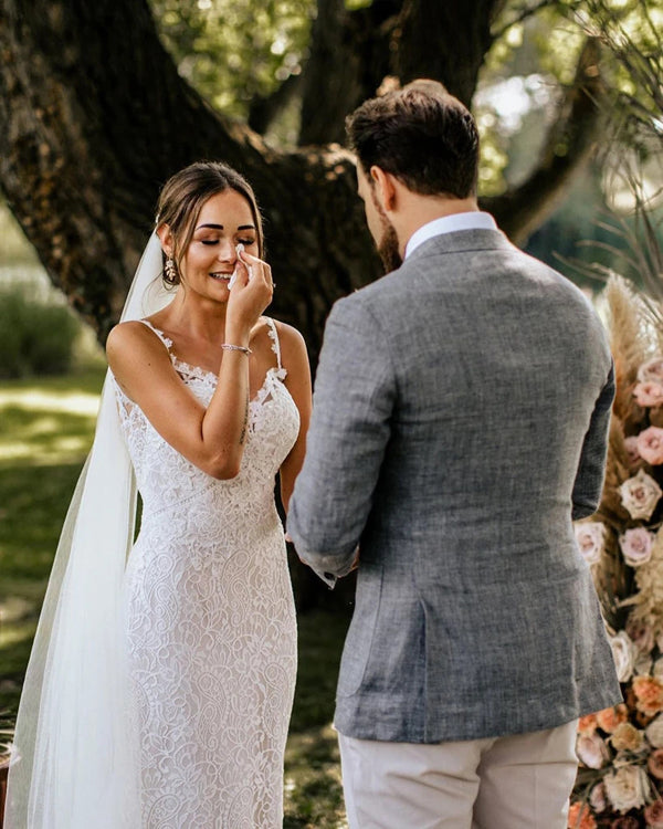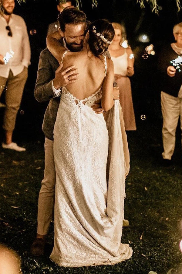Spaghetti Straps Lace Mermaid Wedding Dresses Lace Romantic Bridal Dresses.MW505