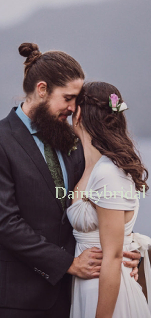 A: Each dress is carefully tailored to match exactly what you see in the photo, and unfortunately we are unable to modify the style, length or material in any way.