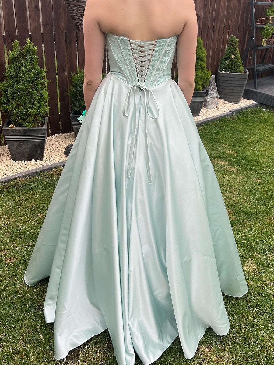 Mint Green Strapless Shimmer Corset A-Line Long Prom Dress