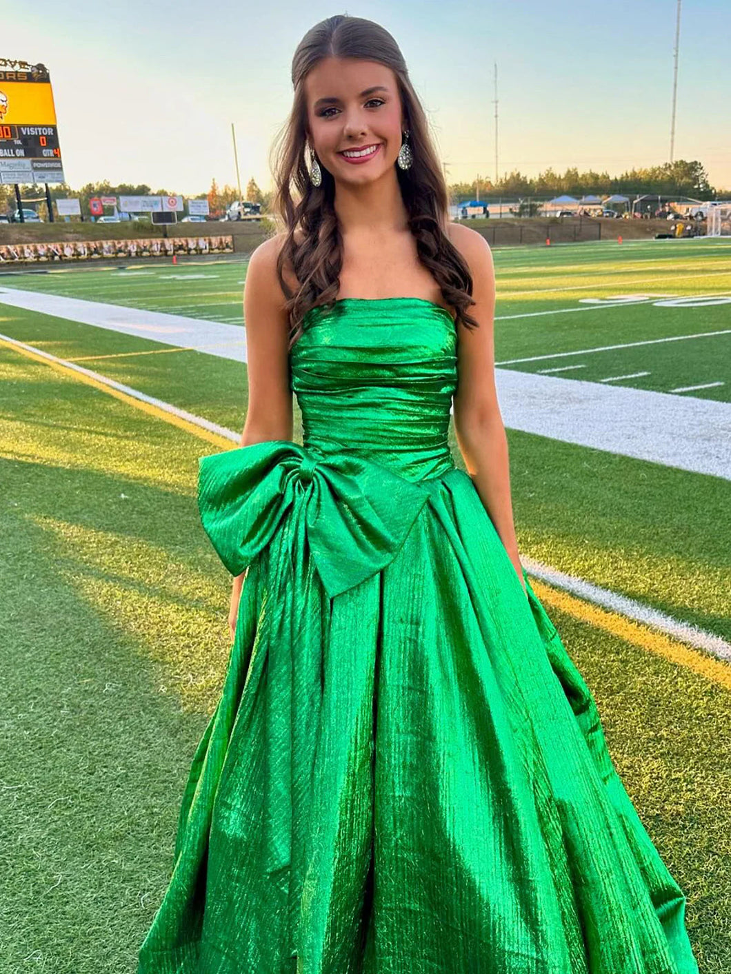 Step into the spotlight with our stunning Fuchsia Strapless A-Line Long Prom Dress With Bow. This dress is crafted from luxurious metallic fabric that shimmers beautifully as you move. A fabulous selection for both evening dresses and formal dresses. with its A-line silhouette flows gracefully to the floor. ensuring you feel both elegant and comfortable throughout the night. The strapless neckline showcases your shoulders and collarbone. while the delicate bow-knot embellishment adds a charming touch of sophistication. With a lace-up back. this dress allows for an adjustable fit. ensuring you look your best. Whether you're dancing the night away or posing for photos. this fuchsia gown is sure to turn heads and make unforgettable memories.