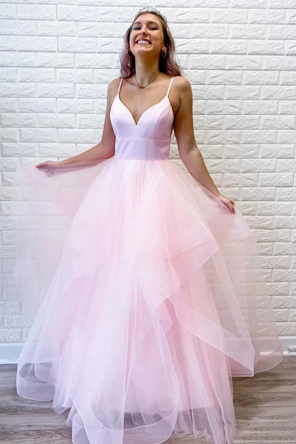 Inspired Prom Dress Ballgown Ruffles Pink Formal Gowns SYP39