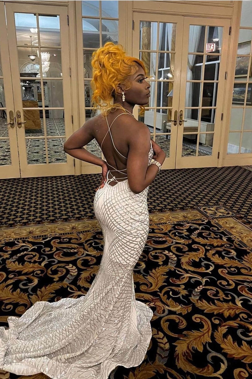 Look like royalty with this beautiful halter mermaid prom dress featuring stylish criss-cross straps and a unique applique. Perfect for any formal occasion. this dress is sure to make you stand out from the crowd.