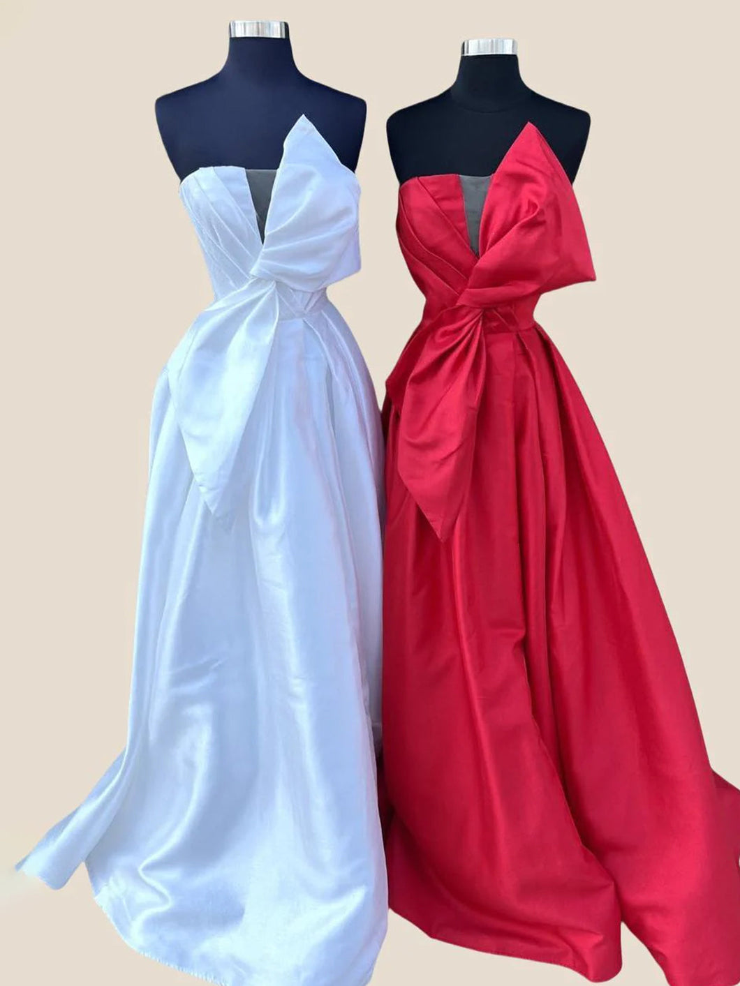 Edgar | Strapless White Satin A-line Long Formal Dress with Bow