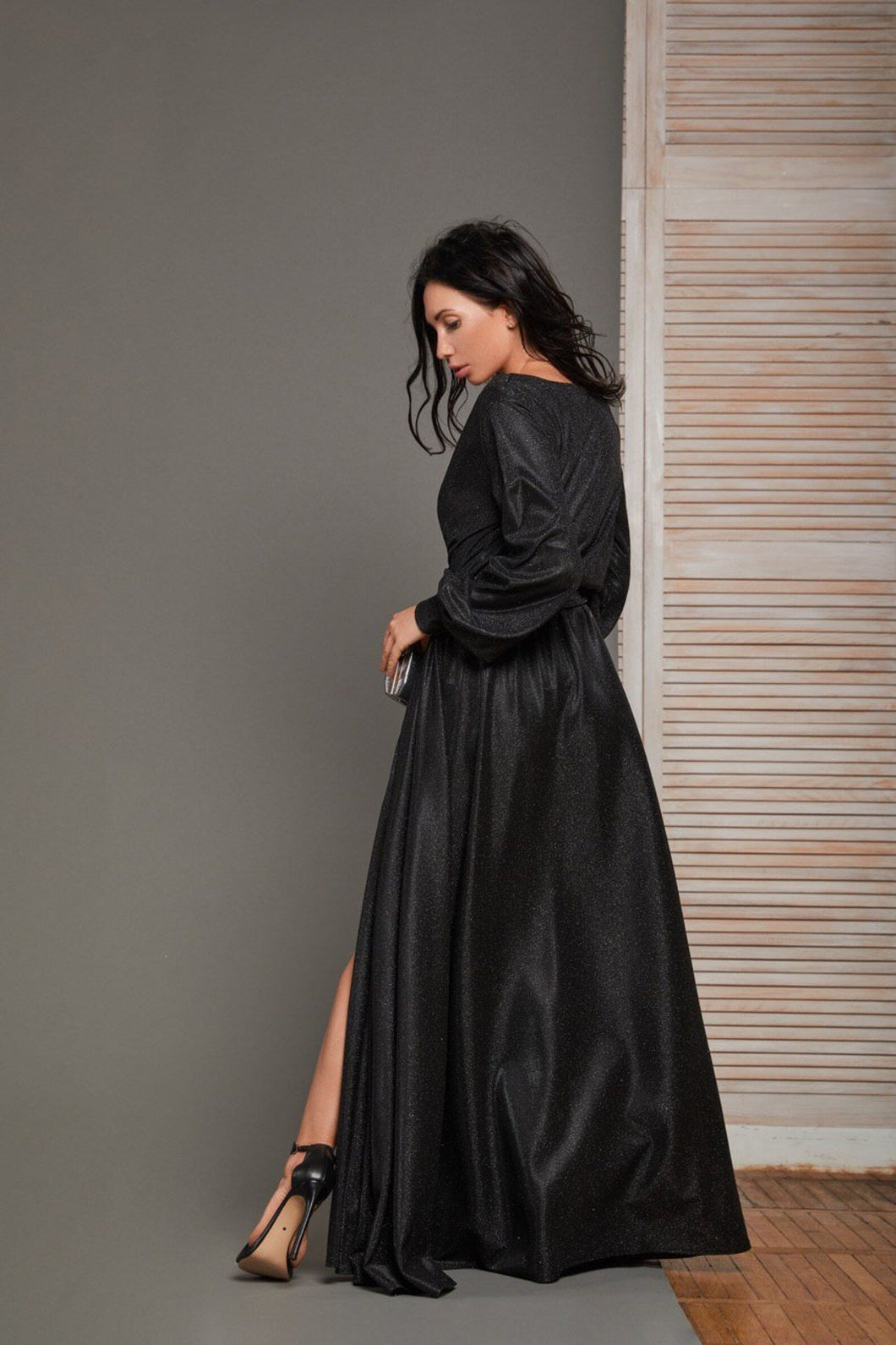 Glitter Puffy Sleeve Prom Dresses for Women Long with Slit Evening Formal Party Gown SYP01