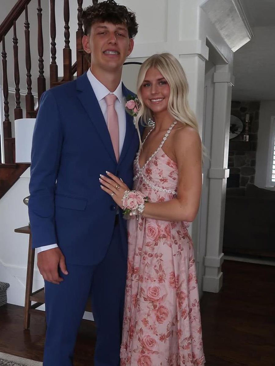 Channel pure romance in this stunning floral print gown. This dress features an elegant. pearl-beaded halter neckline that plunges into a unique sheer corset bodice. Visible boning and delicate pearl trim define the waist. creating a beautiful contrast with the soft. romantic floral print. The true showstopper is the voluminous A-line skirt. crafted from cascading. abundant tiers of lightweight. ruffled fabric that float as you move. Perfect for prom. a garden gala. or any enchanting evening.