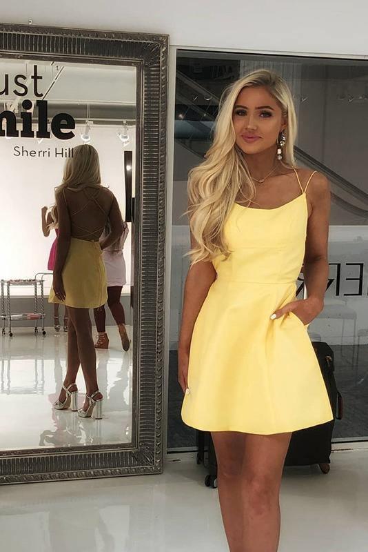 Wear the perfect prom look with this Sexy Spaghetti Straps Short Pink Homecoming Dress with Pockets PD102. Crafted with premium material. this stylish dress comes in multiple colors. featuring a sleek design with pockets and spaghetti straps. Put an elegant stamp on your prom night with this dress.